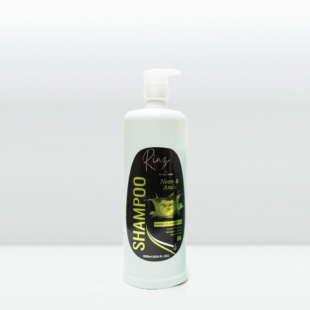 RINZ Neem & Amla Oil Shampoo combines the purifying benefits of Neem Oil with the rejuvenating properties of Amla Oil. Infused with essential vitamins and minerals, this luxurious shampoo deeply cleanses while maintaining optimal moisture balance. Neem Oil is rich in Vitamins E and C, providing antioxidant and soothing properties, and contains essential fatty acids, including Omega-9, that help nourish the scalp and strengthen hair. Amla Oil, rich in Vitamin C and essential fatty acids like Omega-3 and Omega-6, aids in rejuvenating and fortifying your hair. Together, these ingredients leave your hair soft, shiny, and revitalized, promoting a healthy scalp and enhancing overall hair health. Suitable for all hair types
