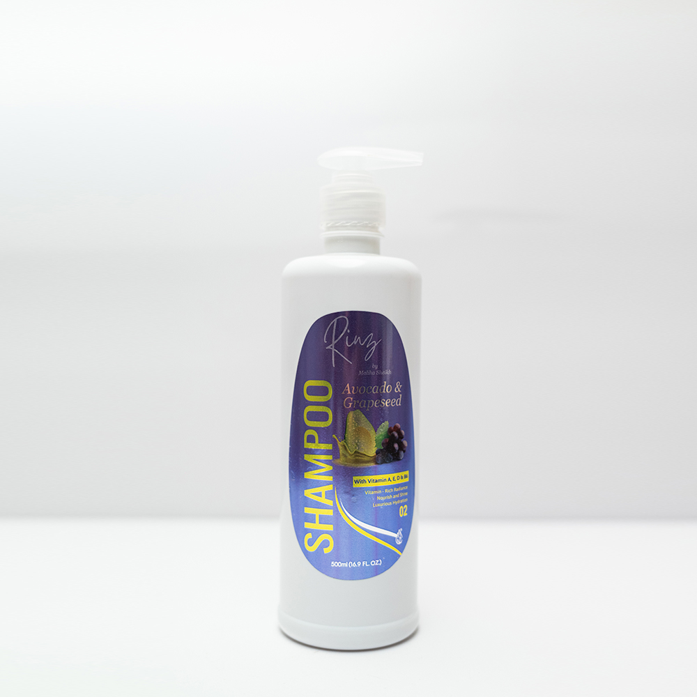 RINZ Avocado & Grapeseed Oil Shampoo blends the rich nourishment of avocado oil with the light, moisturizing properties of grapeseed oil. Enriched with essential vitamins A, D, E, and B6 from avocado oil, and Vitamin E from grapeseed oil, this luxurious shampoo effectively cleanses while maintaining optimal moisture balance. It leaves hair soft, shiny, and revitalized, promoting a healthy scalp and enhancing overall hair health. Suitable for all hair types